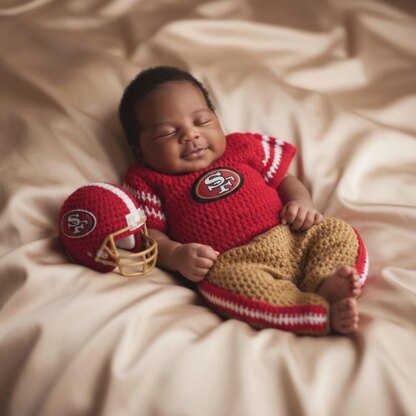 Any football family enthusiasts will love this cute little outfit. The San Francisco 49ers outfit is adorable, easy and takes very little yarn.