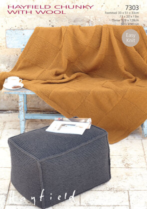 Footstool Cover & Throw in Hayfield Chunky with Wool - 7303 - Downloadable PDF is a Knitting pattern by Hayfield, available as a Downloadable PDF and includes instructions in English. Super fun to make, this pattern could be your next masterpiece!