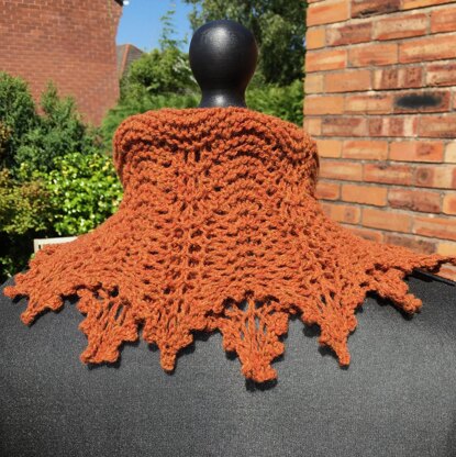 Be elegant and warm with the delicate pointed leaves of Forest Ferns Moebius. Worked from a central moebius cast-on that grows into a garter stitch band, the points of the cowl are offset, just as ferns are in nature. A feather and fan pattern that is finished with a picot edging and blocked firmly creates the shapes and airiness of fern fronds.