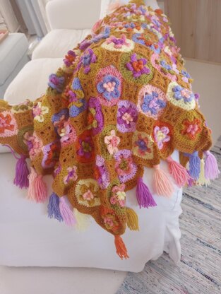 This instantly downloadable pattern will teach you step-by-step how to complete the flower circle motifs, granny square joins, and border with tassels. The 22-page pattern includes over 100 step-by-step photos and charts, as well as, seven links to exclusive videos for extra added assistance. Additionally, a two-page abbreviated version is included. Many crocheters like to utilize this two-page version for printing.