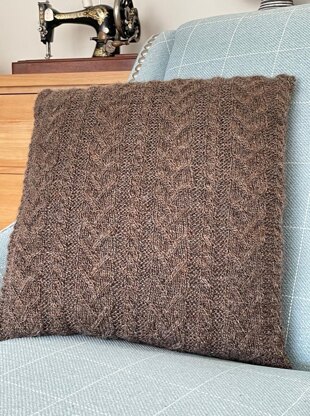 This double knit cushion features a traditional cabled pattern, suitable for a range of interior styles. Instructions are given for a 16" (40cm) cushion but the design will stretch to an 18" (45cm) pad by adding extra length. Four buttons on the back make the cover easy to remove for washing. I used King Cole Panache, which is slightly fluffy for an even more cosy effect, but most DK yarns should work just as well. Please check the yardage and tension carefully.