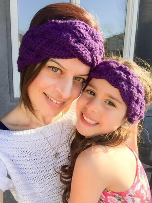 This is a mother/daughter matching headband crochet pattern; instructions are provided in one size for adults and 2 sizes (Small and Medium) for girls aged 2 - 10 years old.  Finished measurements are as follows: