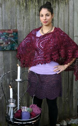 This stunner is a v-shaped shawl made with just 7 motifs! Of course, the edging makes it (love the bling), and you'll need about 20 gms of size 6 seed beads. I used clear silver-lined Japanese seed beads.