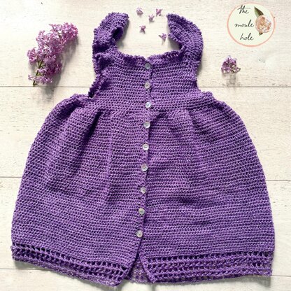 This gorgeous summer dress uses as Fine weight 2 yarn. I used a linen yarn but cotton would do too. Some of my testers were able to get a similar gauge with dk weight yarn. The drape will be slightly different if you use dk.