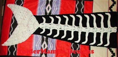Coupon Code TAIL for 50% off Breaking news, A Fossilized Mermaid Tail has been found . At last evidence that mermaids are no longer a myth. The pattern is written for 5 foot 4 person. There are directions on how to alter it to the size you desire. Pictures of many of the steps. Written in American Crochet Terms The Sample used 3 skeins black used single for the bag. And 2 skeins white used double for the tail, ribs, and spine.
