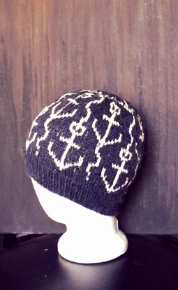 A hat for him or her. This fitted cap with a touch of nautical whimsy will be a go-to favorite! The contrast material of wool in the background and cotton anchors adds a textured interest.