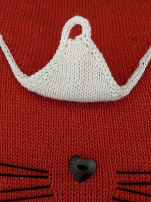 The Fox pillow is knit in the round from bottom up. Working in MC, close the pillow with the three needle technique. Continue the flap, working back and forth in MC, decreasing sts to shape the nose, then continue with C1, increasing sts for the reverse side of the nose flap. Join the two layers with I-cord edge, adding a loop for the button. Embroider the eyes and whiskers. Knit the ears separately and sew on to the top of the pillow. Zipper is sewn to the CO edge.