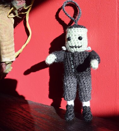 Frankie can be made with or without the hanging loop, but will but will add that spooky something to any Halloween tree, or garland.