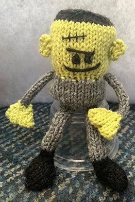 I used dk for this one pictured and it is approximately 7 ½ inches from the head to the soles of his boots, making it perfect for little hands!