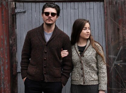 Fredericton is a unisex cardigan knit with two strands of yarn held together to create a marled effect. It is worked in Reverse Stocking stitch to add even more texture to this otherwise very simple garment. Shawl collar, set-in pockets, rolled up cuffs, and optional crochet collar edging are understated details that make this a wardrobe staple that is classic and timeless.