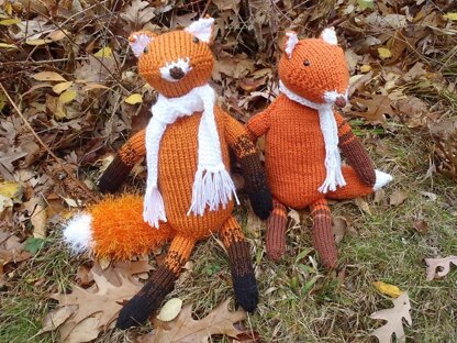 This adorable fox is knitted in the rounds, all parts (head, body, legs, arms, ears, tail) separately and sewn together.