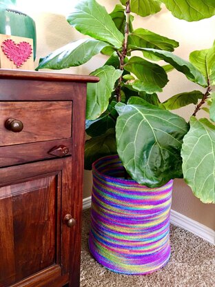 This versatile basket can be a pretty container your favorite plant, your yarn stash, toys, hats and mittens, blankets, or anything else.