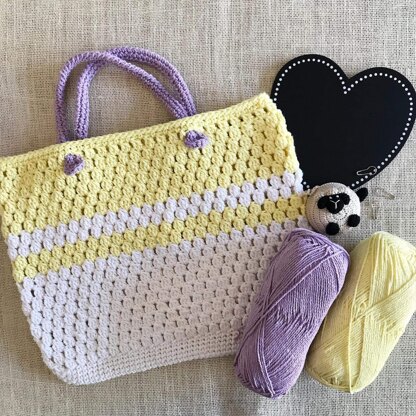 Freesia Bag PDF pattern designed and written. By: Emma Wilkinson© Cotton market bag; inspired by the fresh colours of spring and my mother’s love of freesias. Bag will fit an A4 document inside. Practical, yet pretty. Written in US terms. Pattern uses US crochet terms. Uses 4.5 mm