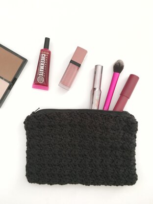 A flat zip bag perfect for a makeup bag, clutch bag or pencil case. Using two stitches, blanket stitch and half double crochet, for a reversible look.