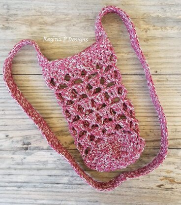 I’ve been creating water bottle pouches for years and was just recently asked to make one specifically for a friend. They wanted a mesh effect but not quite so holey and the fresh mesh water bottle sling was born. They were extremely pleased and so were my testers. You can adapt the height of the bag portion by adding or subtracting round repeats or change up the strap to your desired length.