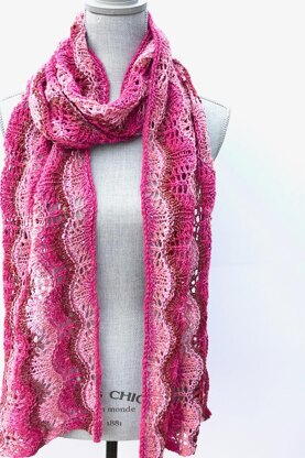 The Freya Scarf is an oversized lacy design knit with a beautiful variegated yarn. It can be worn as a scarf or wrap it around your shoulders on a cool night.
