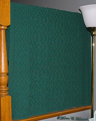 This worsted weight blanket is quite light due to the open cable panels with plenty of negative space between the ribs. The side panel charts are easily learned while the center panels keep it interesting. As a lap blanket, it is wide enough at 40" (102cm) for two people to cuddle under. When the weather is chilly, it's your perfect companion or an appreciated gift for a loved one. The Freydis blanket looks great on the back of the couch, the foot of the bed, or draped over a railing.