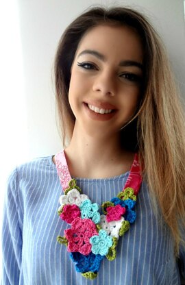 - fabric strips, metal clams, metal chain, jump rings, lobster clasp, ribbon.