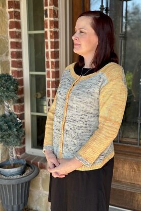 Friday Night Cardigan is a saddle-shoulder cardigan with no seaming. Sleeves are picked up from the saddle shoulders and knit to the cuffs; neckband, placket and button bands are picked up. This is a basic cardigan suitable for men or women. Dress it up with fancy buttons or fancy variegated yarns!