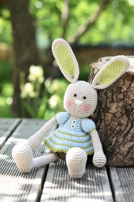 Frilly-pants Bunny is a sweet and gleeful bunny – the best companion for little girls to travel through their childhood. She`s wearing a non-removable striped dress with puffed sleeves and cute pants with frills. Tiny buttons on her dress and fabric patches covering her ears make her really special.