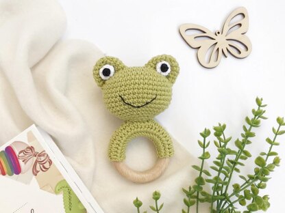 Frog crochet pattern baby rattle Amigurumi teething toy