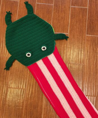 Froggy extends his tongue to catch a fly. Guess what he caught? A toddler at naptime! The frog's tongue extends to become a toddler blanket, then rolls back up and zips into the frog to be a friendly frog plush toy the rest of the day. Your little one will love taking this frog everywhere they go. Also a great idea for back to school for kindergarten. Easy crochet pattern with YouTube tutorial links.