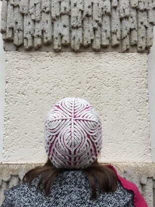 This slightly slouchy beanie is knitted in a two-color brioche stitch pattern, four repeating pattern rounds are forming some mirrored leafs and a flowery crown. A perfect beanie for a special gift, even given to yourself. Again it was surprising to knit the crown. I´m sure, you will enjoy it.