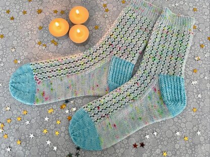 As I wan knitting these, the stitch pattern brought to mind those chilly days when you wake to look out onto a world coated in a sparkling frost. They make the perfect first lace pair of socks, but are equally as enjoyable for a more experienced knitter.