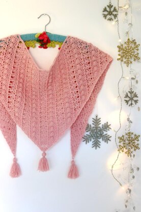 With lots of lovely textured stitches, this shawl features a mix of waltzing flower clusters and sugar plum bobbles to hold your interest to the end.