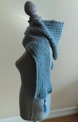 So warm and so attractive. Wear it as a hoodie-scarf and simply pull up the hood if needed. It is made in a medium-weight, soft, worsted, acrylic/wool blend yarn. Pattern includes directions on how to make a tassel with embroidery thread, or a single knot fringe with yarn. One Size: Hood 13" L x 11" W; Scarf 70" L x 6" W. Skill Level: Easy. Crochet Hook: US H