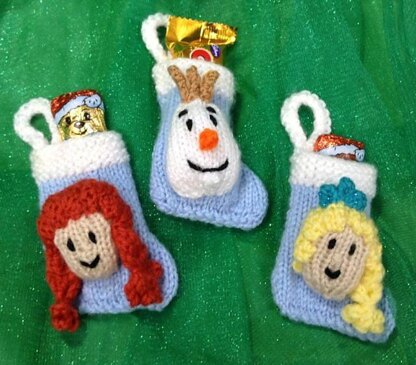 This knitting pattern is for three Frozen inspired christmas stocking decorations