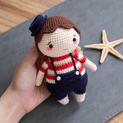 Size: The finished Fule-2 doll stands approx. 15 cm, 5.9 inches tall. Certainly, the thinner yarn you use, the smaller the doll will be.