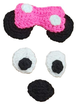 Materials: Crochet hook Size G (4mm) Needle, scissors, stitch markers, and row counter as needed. Approximate yarn requirements: Size 4 Medium Black (100y/92m/50g), small amounts of Pink and White.