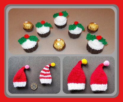 There are instructions for 3 designs - a Christmas Pudding, Santa Hat and Elf Hat.