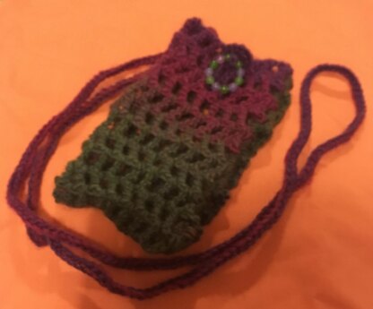 A colourful Boho long corded purse for your mobile phone in beautiful gradient 100% wool and trimmed with a Jade beaded toggle closure. Ideal for the girl who likes to travel light with just her phone, card, and keys. Great for festivals, clubbing, and the beach.