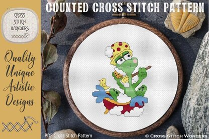 What a fun and cute FROG Design!\nOriginal licensed artwork by Embroidering Colors.\nCross Stitch Pattern designed by Marcia Manning.\n62 stitches wide by 82 stitches high.\nPDF is a COLOR counted cross stitch chart which lists suggested DMC floss colors, and includes a color picture.\nStitched design size is as follows:\nSize 14 count: 4.43 x 5.71 inches or 13.97 x 14.88 cm\nSize 16 count: 3.88 x 5.00 inches or 12.22 x 13.02 cm\nSize 18 count: 3.44 x 4.44 inches or 10.87 x 11.57 cm\nSize 22 count: 2.82 x 3.64 inches or 8.89 x 9.47 cm