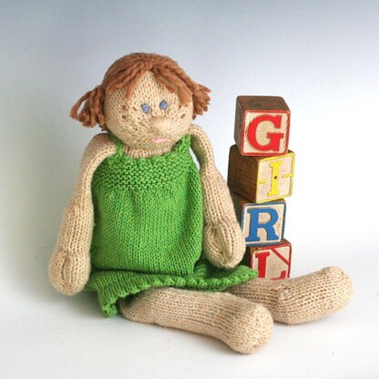 When knit to gauge, Girls will measure about 16.5” from head to toe. If you are looking to make a doll in one of the darker skin toes, you have it made: there are many beautiful natural fiber yarns available in browns and tans. You'll have to look a little harder for a pallid skin match. I worked the example Girl in with discontinued Blue Sky Alpacas color-grown organic cotton. My top suggestion of an available yarn is Ecobutterfly Organic Farfalle. Farfalle is available in several color-grown shades that are great for skin tones - even a couple for the SPF80 set. A modest amount of yarn in matching weight will be required for her knit-on undies. Her sundress/nightgown requires another 150 yards of sportweight and additional yarn for her hair (see the pattern notes for greater detail).