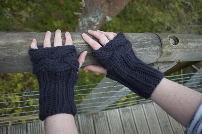 Knit a quick and easy pair of chunky, warm and stylish fingerless mitts. The cable plait is knit flat and either seamed or grafted into a circle. Stitches are then picked up from the bottom of the plait and the cuff is knit in the round.