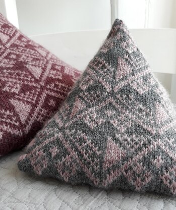 These humbug-shaped cushions start with a provisional cast-on and are knitted in the round.
