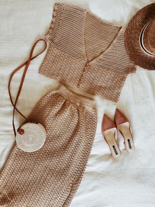 GAGRA Resort Skirt is perfect for breezy warm days. Together with a crop-top (find pattern here) it gives us some 70s retro vibes.