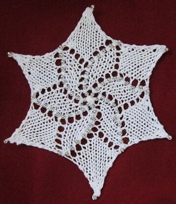 Instructions are given for both beaded and unbeaded snowflakes. A quick knit, this snowflake will soon adorn your packages, holiday tree, sweaters, scarves, and windows! Knit your own blizzard in any size yarn you desire!