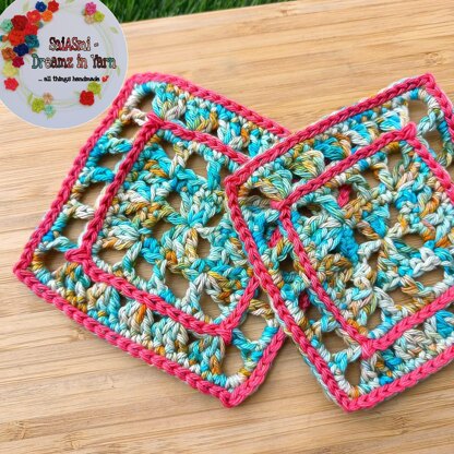 The Main Coaster is made using DK Yarn, that gives you a Granny Square basic round of approximately 1" per Round.