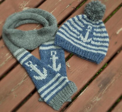 I created this ensemble hat-scarf pattern for my little Boy who loves boat.