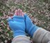 I designed these for my husband, who wanted a really snug fitting pair of mitts. He can play his mandolin or guitar with these on and still have warm hands! And once I got them finished, I liked them so much, I made a pair for myself in blue.
