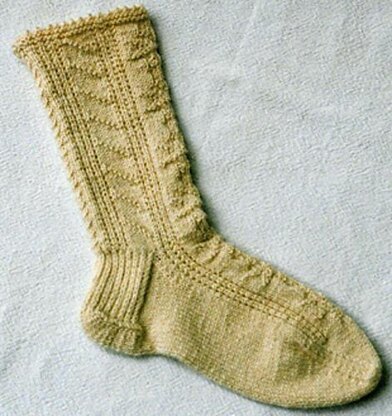 These gansey socks were inspired by the wonderful fisherman sweaters created in England and Scotland in the 19th century. This sock is designed for a Women's medium size. It can be knitted in three lengths: anklet, crew, or mid-calf. This solid color sock begins with the classic Channel Island Cast-On. Traditional Gansey motifs such as the starfish, diagonal lines, and vertical motifs meet at the baby cable on the back seam. The heel flap is constructed with the slip stitch pattern for longer wear.