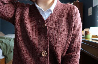 Inspired by the silhouette of Korean Jeogori, the Gaon Cardigan is a seamed, bottom-up cardigan featuring three-by-one texture all over and a button band worked up at the same time. The back panel, front left panel, and front right panels are worked separately, with the button band being worked with the front panels, then seamed to join at the sides, and joined with the three-needle bind-off at the shoulders. The button band is then finished to the back neck. The sleeves are picked up and worked in the round from the armholes, and short rows are added to shape the shoulder and create a comfortable fit.