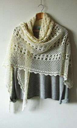 Garden Gates is light and airy triangle-shaped shawl worked top-down with alternating rows of fans and mesh stitch. Size is easily adjustable by adding or skipping rows both in fan and mesh sections.