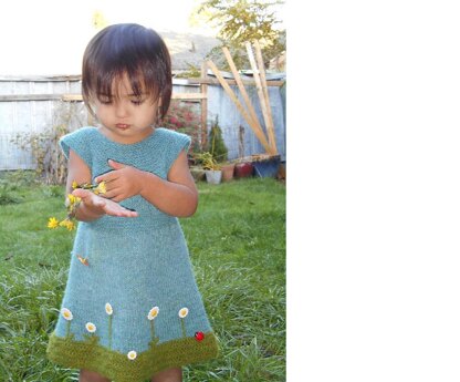 Garden party is a fun little dress. You can keep it plain or embroidered, either way it is a versatile piece for your special little girl. Sure to be an Heirloom piece. Top down design, knit mostly in the round. Garden party is made to be worn loose, grow with your baby, and go from a dress to a tunic to wear with tights