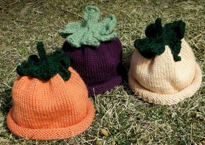 The leaves at the top of the hat are knit separately, then added on to create the crown. An I-cord stem tops it off.