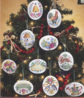 By Sandy Orton. A beautiful tribute to a garden in full bloom! This set of 10 Gardener's Counted Cross Stitch Christmas Ornaments capture all of the beauty of a summer garden.